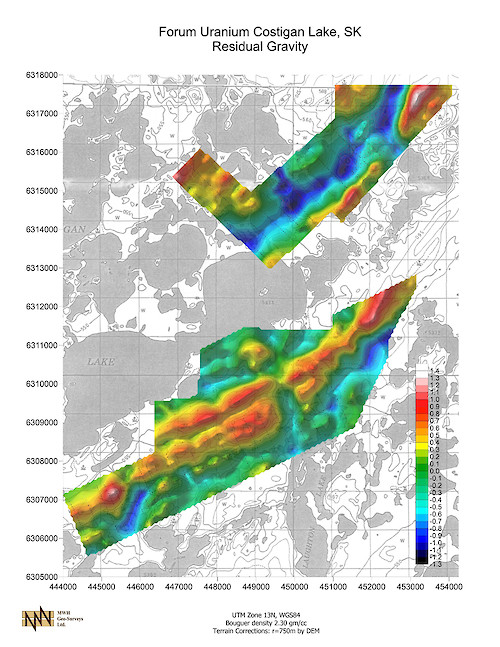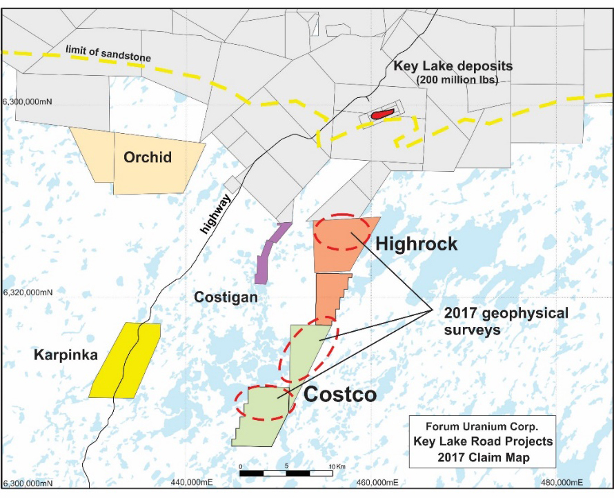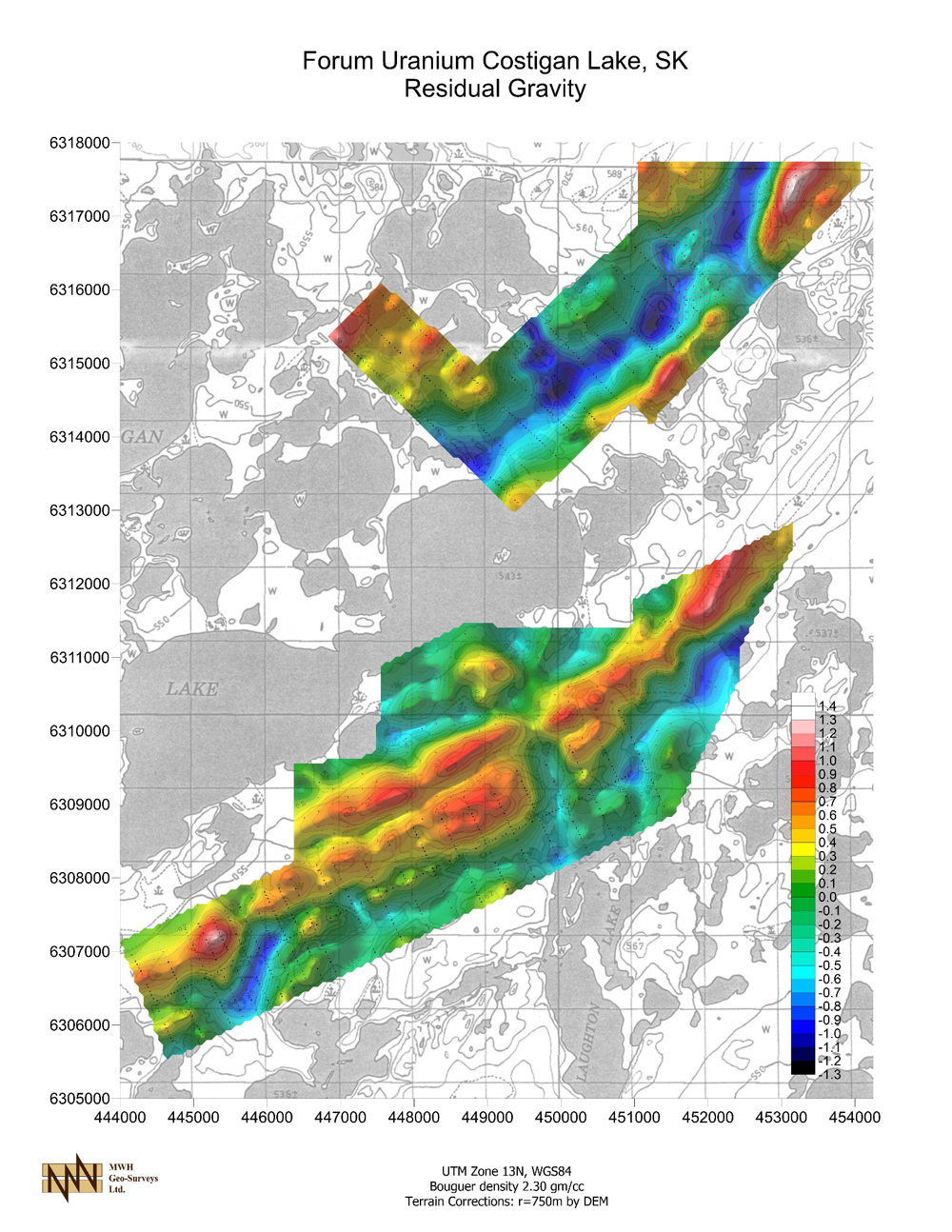 Vancouver, B.C., June 6, 2017 - Forum Uranium Corp.(TSX.V:FDC) (“Forum”) announces the completion of a ground electro-magnetic (EM) survey and ground gravity geophysical program on its 100% owned Costco property (formerly the Key Lake Road Project). These surveys, which have identified several areas of interest for future drilling (See Figures 1 & 2), are part of Forum’s continuing efforts to have all its major exploration projects drill ready for the second half of this year.