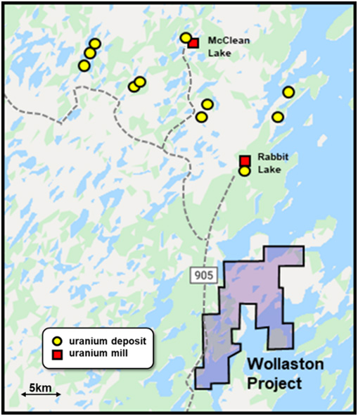 Figure 1: Location of the Wollaston Project with Respect to Local Uranium Mills