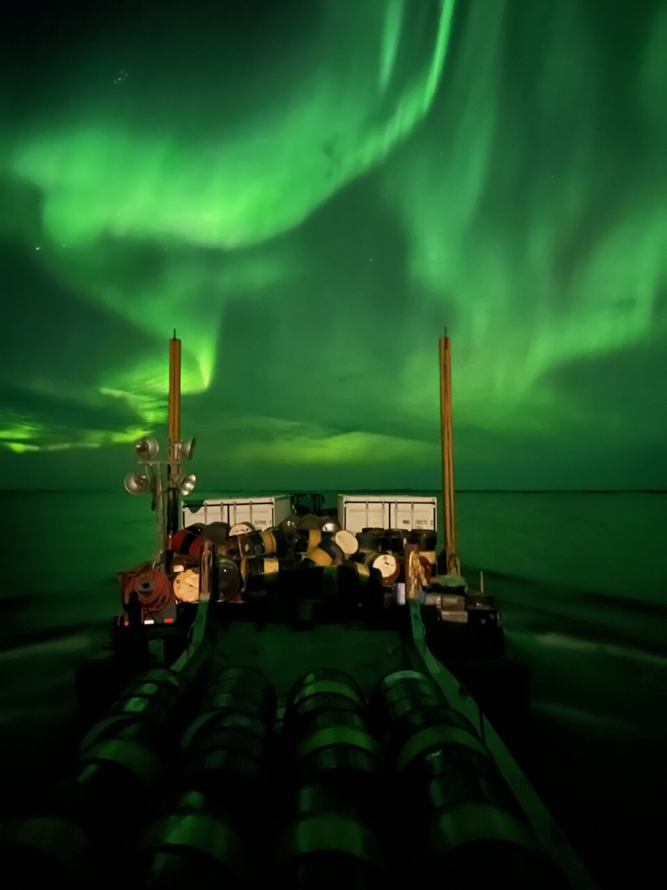 Figure 2 Barge haul from Maurice Bay to Stony Rapids during Forum’s Camp decommissioning activities on the Northwest Athabasca Joint Venture.