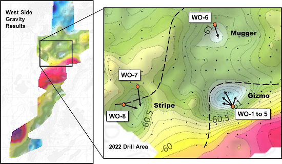 Ken Wheatley, Vice President, Exploration commented, “We are quite pleased to see the combination of the extreme alteration and elevated geochemistry at the Gizmo gravity target. Drill hole WO-02 has the strongest uranium mineralization and the depth of the alteration is increasing to the south. The EM conductor also lies to the west and north of this fence, so further drilling will investigate these areas. This is a great start for our first drill program on this project that has rapidly become one of our premium projects.”