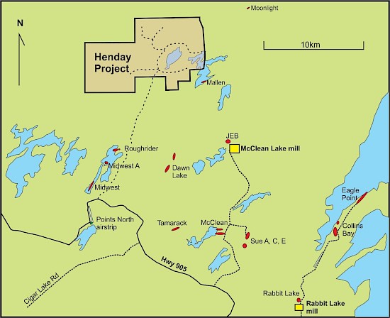 Rebecca Hunter, VP, Exploration commented, “The Henday property has tremendous potential as it is located in the highly sought after Wollaston-Mudjatik transition zone and northeast of several major uranium deposits including the Midwest and Roughrider deposits. The project hosts several favourable EM conductor trends that require additional follow-up. We look forward to working with UEC to progress this well-situated and prospective project.