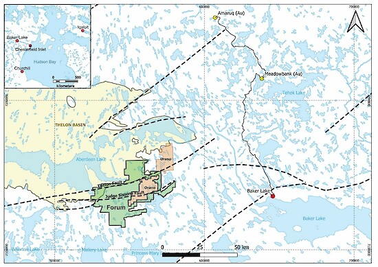 Forum Energy Metals is focused on the discovery of high-grade, unconformity-related uranium deposits in Canada’s premier uranium jurisdictions: the Athabasca Basin in Saskatchewan and the Thelon Basin in Nunavut. The Company holds a significant land position with 153,838 hectares in Saskatchewan — primarily within the Athabasca Basin — and 95,519 hectares in Nunavut’s Thelon Basin.