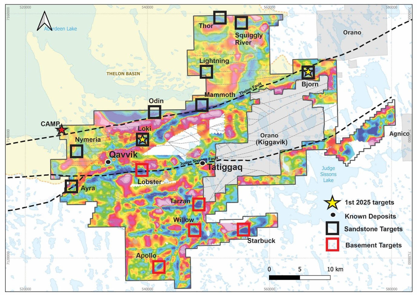 - Sandstone-covered targets (i.e. traditional unconformity targets) such as Loki, Bjorn, Mammoth, Thor, Squiggly River and Nymeria – Loki and Bjorn will be the first 2 areas tested. Drilling in 2024 at Loki contained uranium values 30x background and substantial clay alteration in the sandstone
