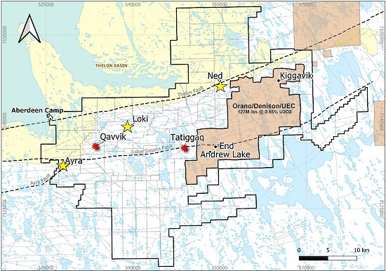 *Source: The Kiggavik deposit is held by Orano (66.2%), Denison (16.9%) and Uranium Energy Corp. (16.9%). Kiggavik mineral resources are 127.3 million pounds Indicated mineral resource grading 0.55% U3O8 and 5.4 million pounds Inferred mineral resource grading 0.33% U3O8 as reported on the Denison Mines Ltd. Corporate Presentation dated November 2024, p. 23 on their website and the Orano 2023 Activities Report converted from tonnes U to pounds U3O8 and from %U to %U3O8. Cut-off grades and other assumptions, parameters and methods used to estimate resources are unknown. A qualified person has not done sufficient work to classify the historical estimate as current mineral resources or mineral reserves and the issuer is not treating the historical estimate as current mineral resources or mineral reserves.