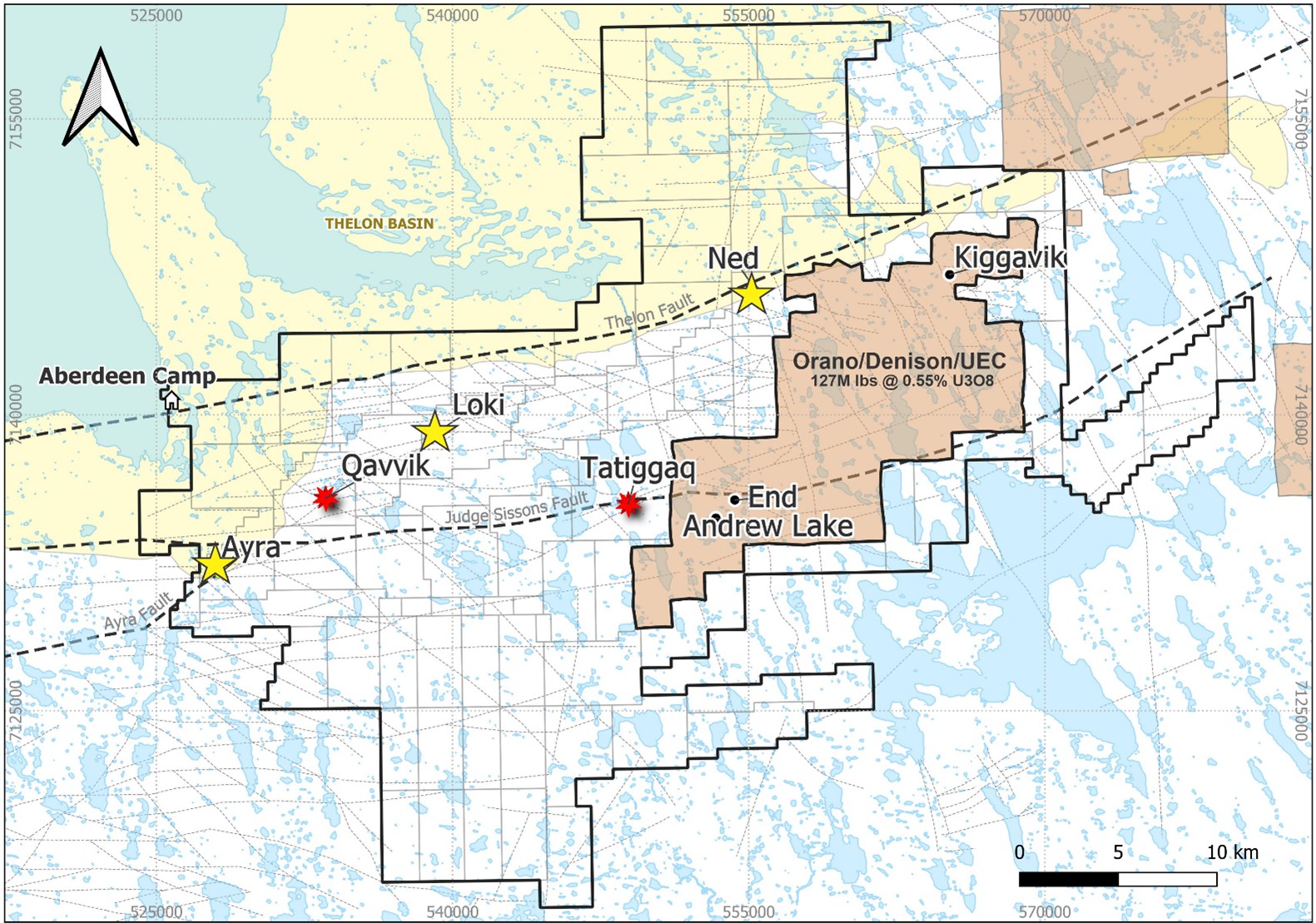 - With two basement-hosted deposits and over fifty targets identified on Forum’s property adjacent to Orano’s 127 million pound Kiggavik uranium deposit*, the Thelon Basin is emerging as a word class uranium district.