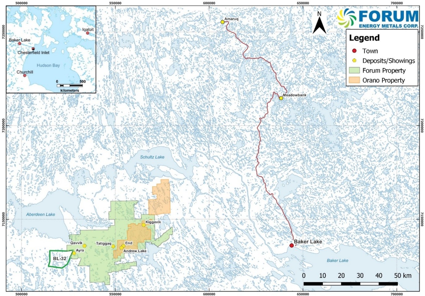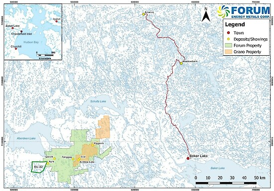VANCOUVER, B.C., - Baselode Energy Corp. (“Baselode”) (TSXV: FIND; OTCQB: BSENF) and Forum Energy Metals Corp. (“Forum”, together with Baselode, the “Parties”) (TSXV: FMC; OTCQB: FDCFF) are pleased to announce that we are opening our exploration camp on the Aberdeen Project in Nunavut and plan to initiate a 2-drill diamond drill program in July (Figure 1).