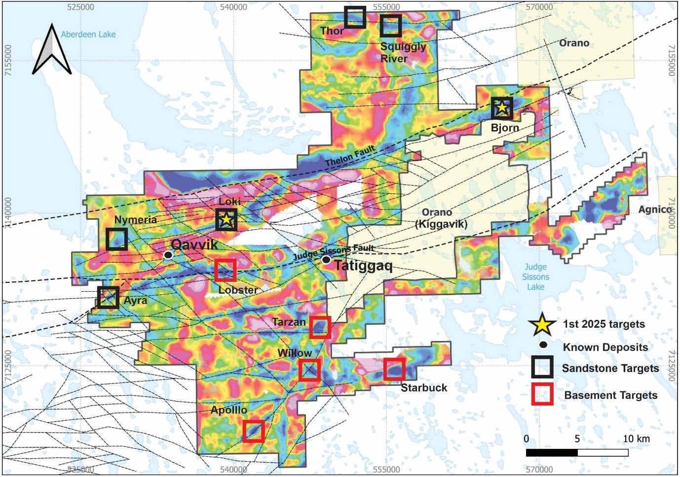 - Target Areas: 10 high-priority target areas, both with and without sandstone cover; first targets tested will be Loki and Bjorn