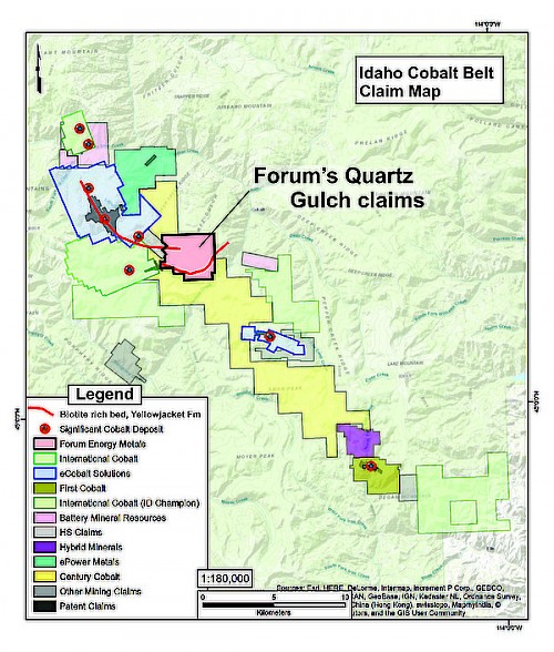 Quartz Gulch is located approximately 5 kms to the southeast of the past producing Blackbird cobalt mine (Noranda) and Jervois Mining’s Idaho Cobalt Project, the only permitted cobalt mine under development in North America. |